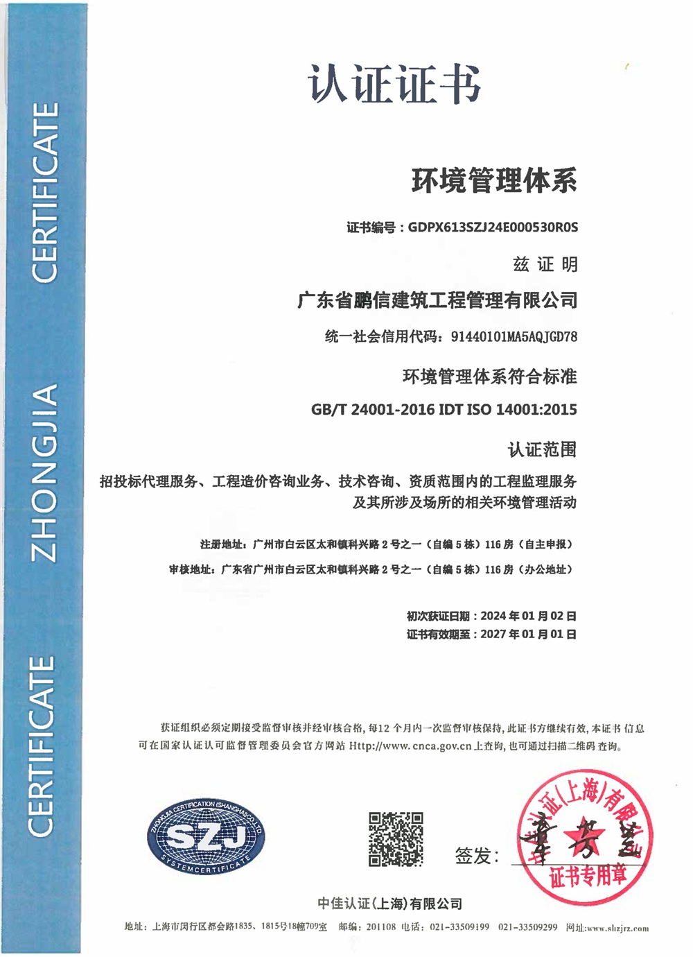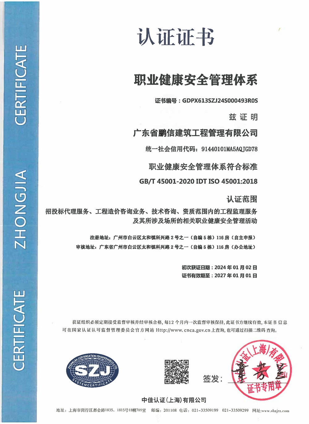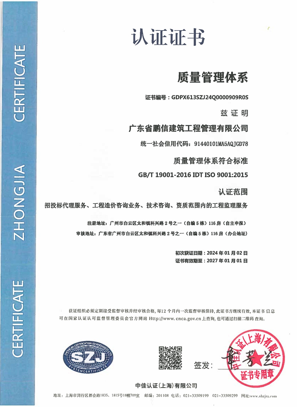 广东鹏信监理资质证书